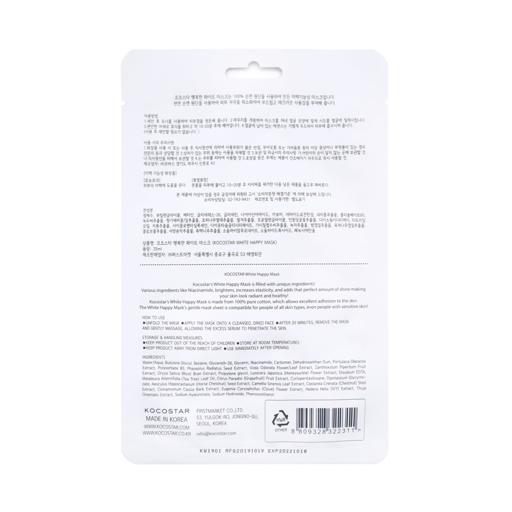 White Happy Mask is made of pure cotton infused with niacinamide that deeply moisturizes and brightens the skin.