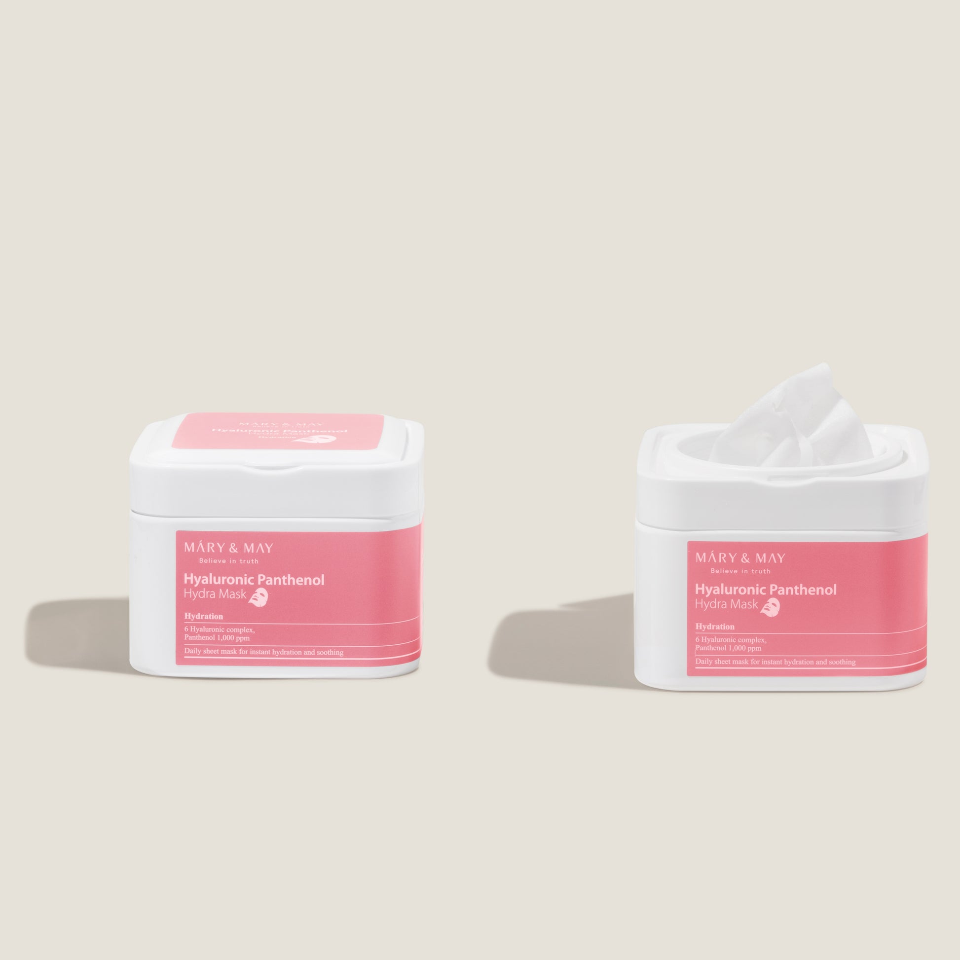 Mary&May Hyaluronic Panthenol hydra mask, which intensively hydrates dry and rough skin to make skin sooth and clear, 30 shhets/400g.