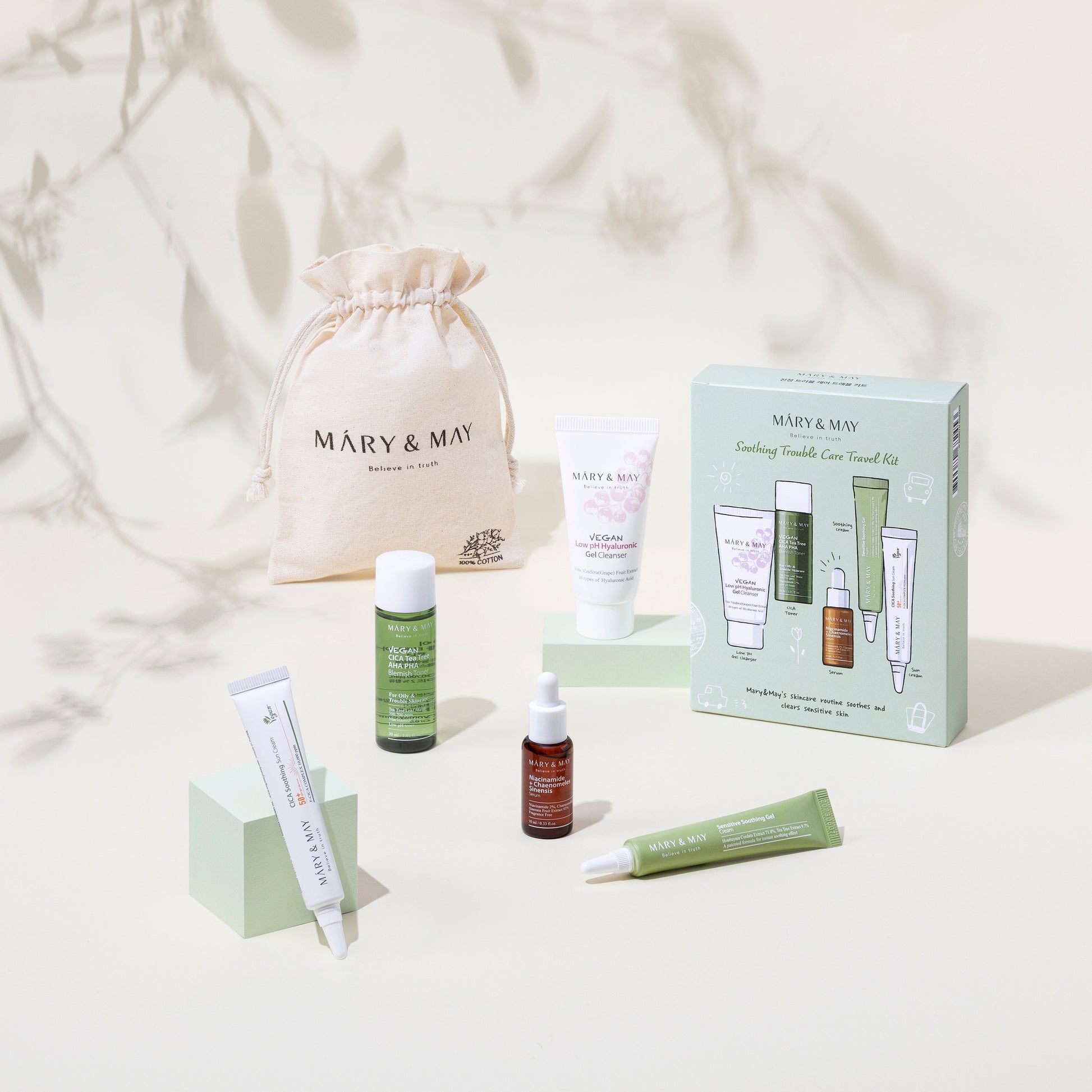 Soothing Trouble Care Travel Kits are 4 miniature essentials including our must have, bestsellers. For soothing and balancing any skin type while you are away!